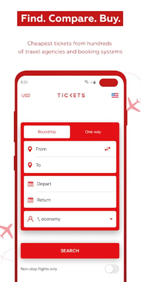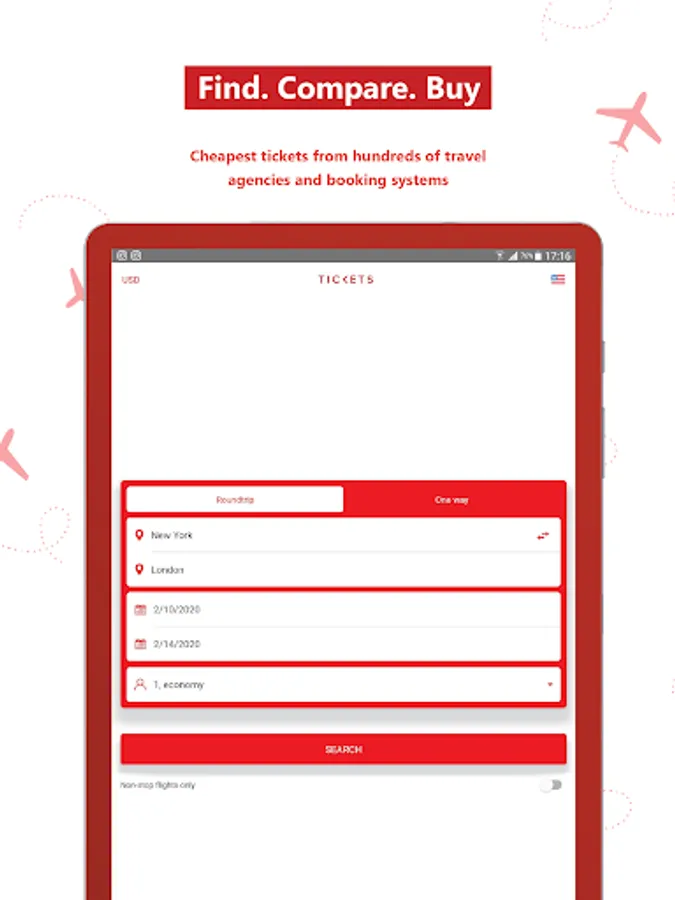 Our flight booking app is designed to find for you the best one way and round trip flight deals from your home airport.