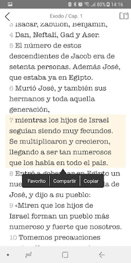 With this application in addition to reading the Bible in a comfortable format you can share Bible passages, create a list of favorites, change the size and font for your convenience.