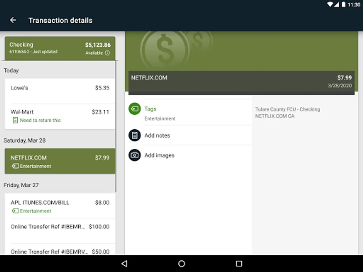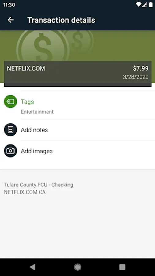 -Keep your transactions organized by allowing you to add tags, notes and photos of receipts and checks.