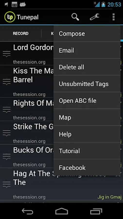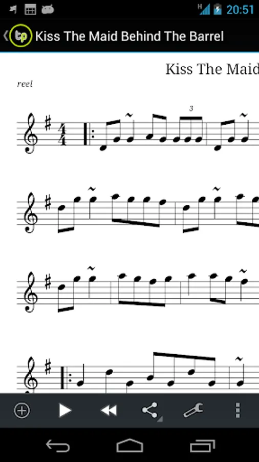 Matching tunes are downloaded to your device, where you can view and edit the notation or the stave, email the tune, post it to facebook or play it back using the high quality playback engine based.