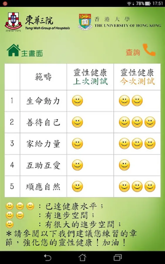Holistic health, meaning the body, mind, society, and spirit are healthy, what is meant by spirituality it? Spirituality is the source of our lives, is the meaning of life and the pursuit of the goal of reflection. Through testing, we can know their spiritual health index, and the test results will be proposed to complete those eight Kam forging practice, let us find a way to enhance the spiritual health. After the completion of the proposed exercises, we can re-measure their spiritual health scores, see if there is progress.