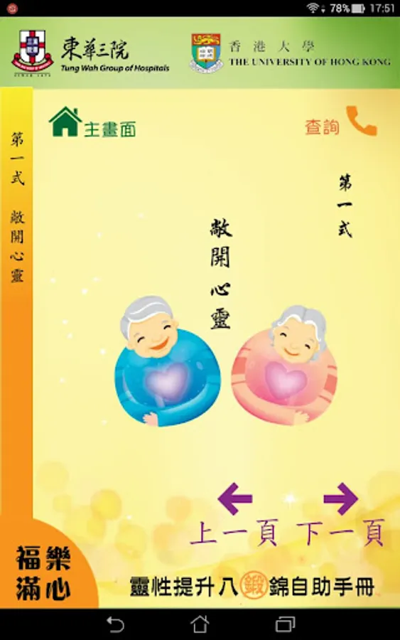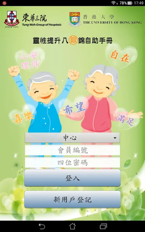 Applications from "full of bliss" spiritual forging Kam upgrade eight converted from self-help manuals, the self-help manuals by the Tung Wah Group of Hospitals Community Services Cowan old service department and the University of Hong Kong research and development, aimed at assisting the elderly to enhance spiritual health, and certainly the meaning of life encourage active aging.