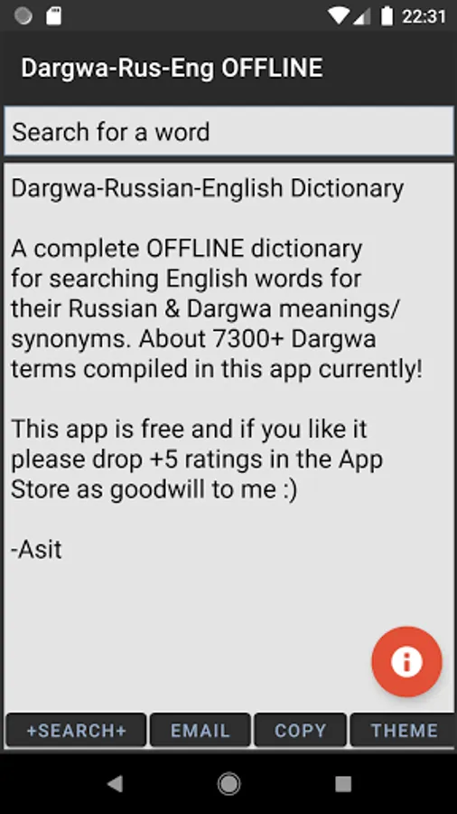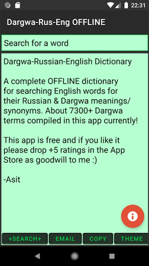 * Please feel free to contact us on our customer support email ID: asitb.applabs@gmail.com for any queries or concerns on this app. Please put this app's name "Dargwa Dictionary" on your email subject line so that we can understand that your email is for this app.