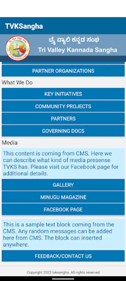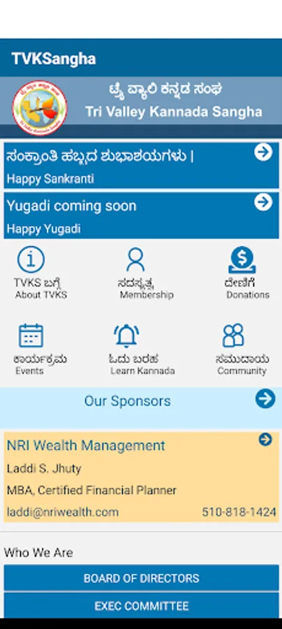 Tri Valley Kannada Sangha (TVKS) is a non-profit, socio-cultural, and charitable organization, incorporated under the laws of the State of California, USA. TVKS is a 501(c)(3) organization approved by the Internal Revenue Service.