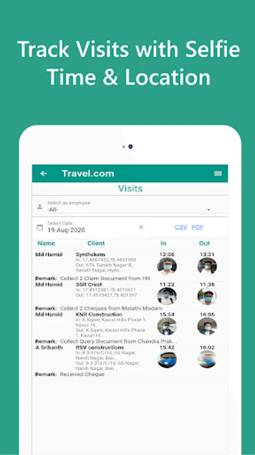 7. Track Visits:Track field staff visits with Photo, location & time remotely. Attendance tracker for managers to check Attendance from anywhere in the globe.