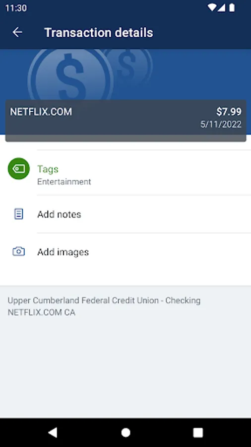 - Keep your transactions organized with the ability to add tags, notes, and photos of receipts and checks
