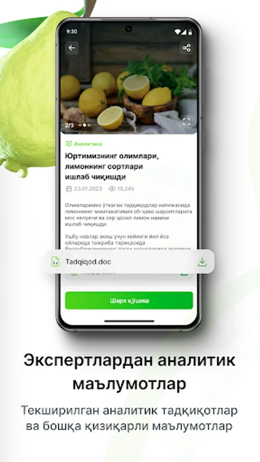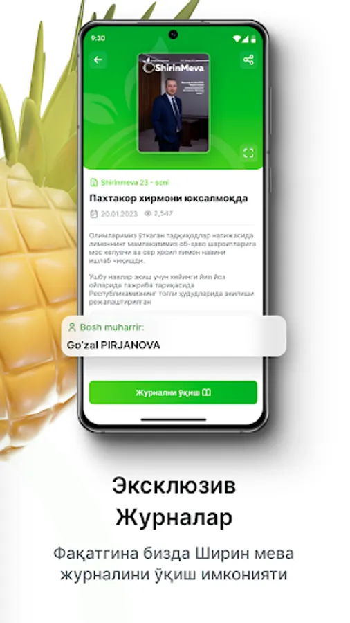 ShirinMeva" агромаркетинг мобил иловаси “Annexure Financial Solutions Ltd.” компанияси томонидан Жаҳон банки ва Европа Иттифоқи Комиссияси техник кўмаги ҳамда Қишлоқ хўжалиги вазирлиги ҳузуридаги Озиқ-овқат ва қишлоқ хўжалиги соҳасида стратегик ривожланиш ва тадқиқотлар халқаро маркази ёрдамида амалга оширилаётган "Ўзбекистонда мева-сабзавотчилик маркетинги бўйича техник кўмак" лойиҳаси доирасида яратилган илова