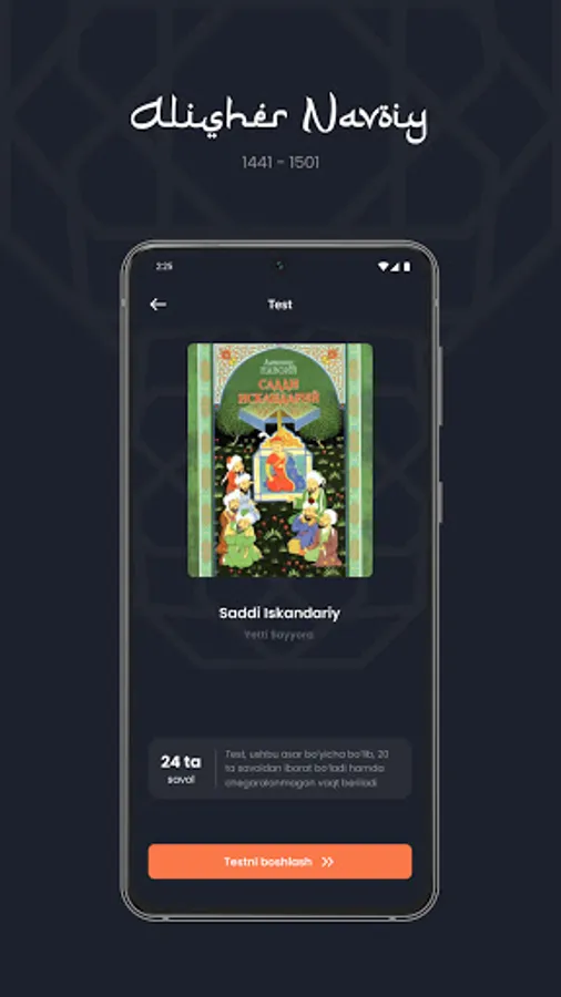Mobil ilova qulay va ko'pfunksiyaligi bilan bir qator qulayliklarga ega. Har bir asar o'qib bo'lingach unga oid testdan o'tish imkoniyati paydo bo'ladi.