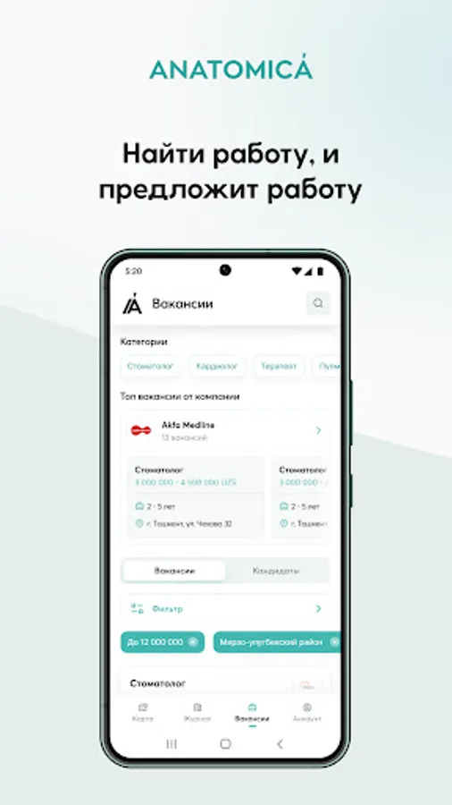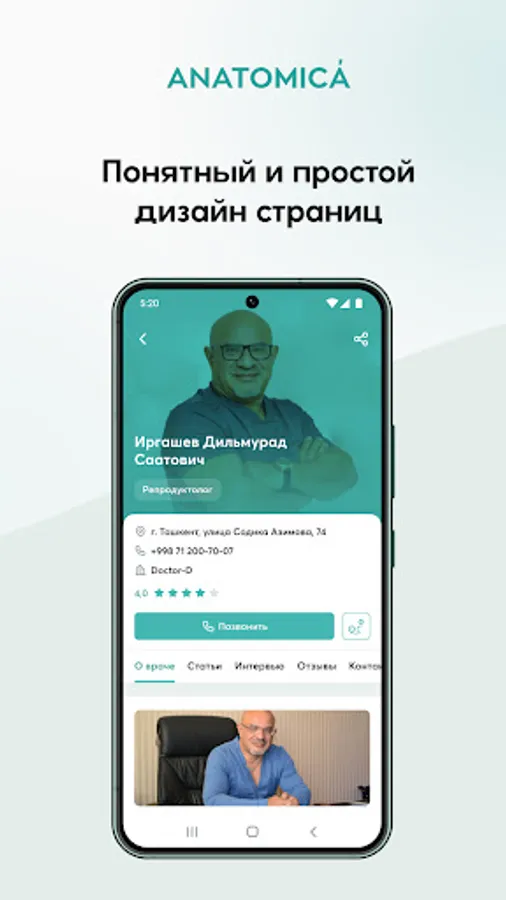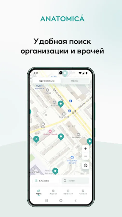 Ilovada siz shifokorlar, bildirilgan fikrlar va reyting haqida batafsil maʼlumotlarni topasiz. Xaritada kerakli mutaxassisni izlash qulay, shifokorni tanlashga ko‘maklashuvchi aqlli filtrlar: mutaxassisligi, masofasi va reytingi bo‘yicha. Endi ANATOMICA yana-da foydali va qulay platformaga aylandi.