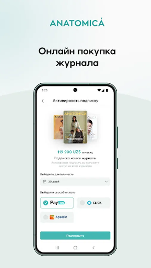 ANATOMICA sahifalarida salomatlik, shifokorlar va klinikalar haqida eng muhim maʼlumotlarni topish mumkin. Jurnal insonlarni sog‘lom hayot tarzini olib borishga va shaxsiy salomatlikni nazorat qilishga motivatsiya beradi. Hayotiy voqealar, yorqin noodatiy fotoloyihalar ruhlantiradi va hayot sifatini oshirishga ko‘maklashadi.
