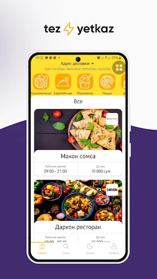 Sevimli restoran va kafelar orqali buyurtma berishingiz mumkin