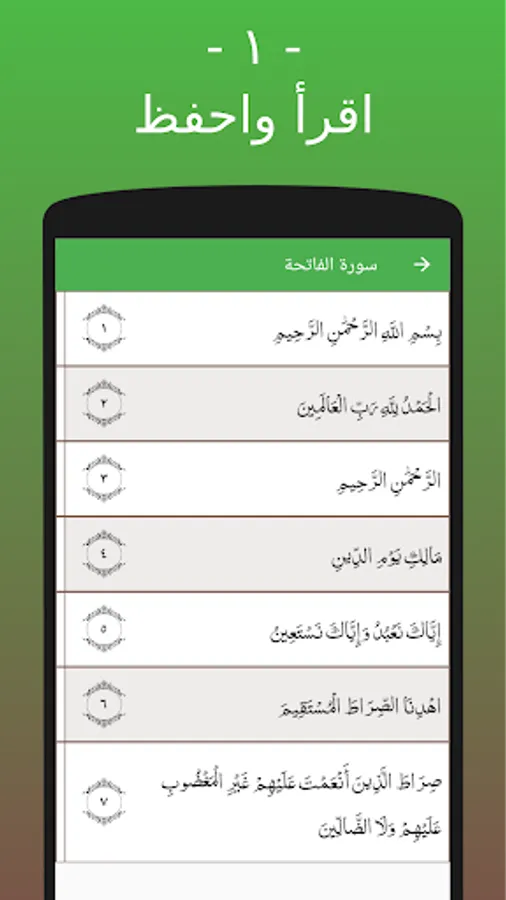 - اقرأ واحفظ: تصفح آيات السور المتاحة واحفظهم؛ عدد السور المتاحة سيزداد بشكل تدريجي وسلس مع ترقيك بالمستوى.