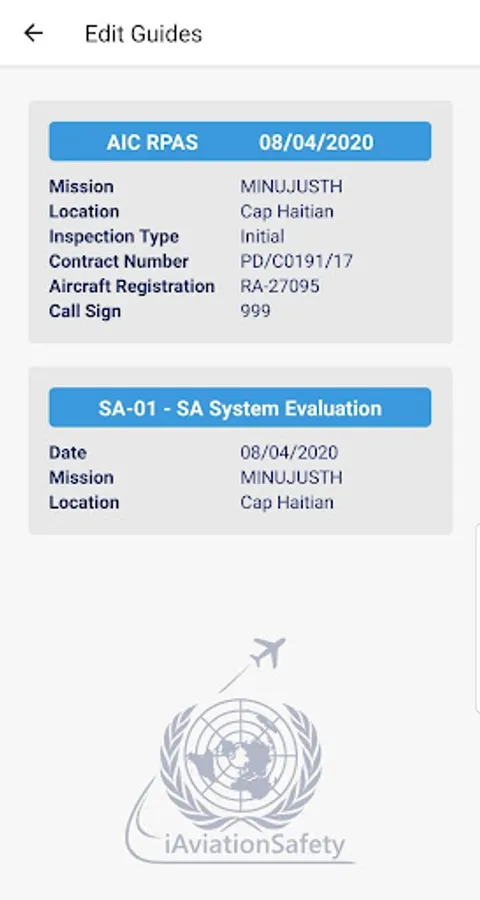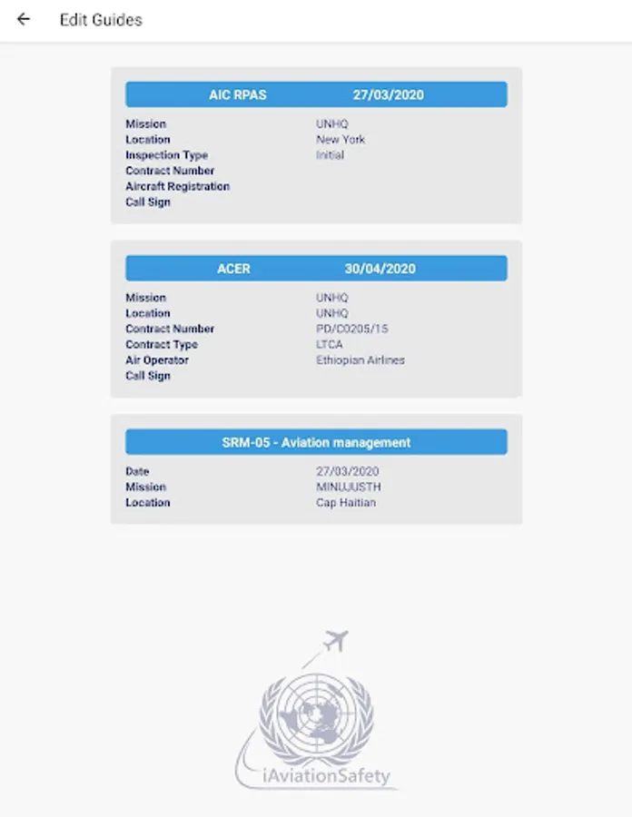 As part of the United Nations DOS / OSCM iAviation Safety platform, the development and implementation of the ASPID mobile application, allows aviation related personnel to globally collect, and share in real time the data gathered from the DPO / DOS contracted aircraft inspections, safety assurance and safety risk management activities.