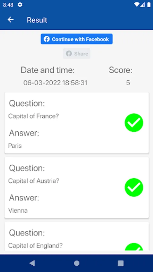 Geography Quiz Screenshots