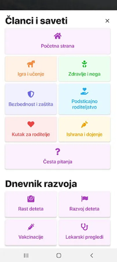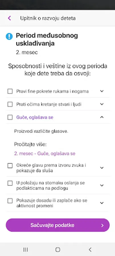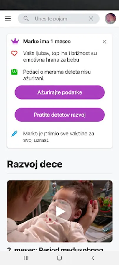 Putem aplikacije možete saznati sve o aktuelnim preporukama o dojenju, pravilnoj ishrani, zdravim i stimulativnim dnevnim rutinama, kao i podsticajnim roditeljskim praksama za dobrobit cele porodice.