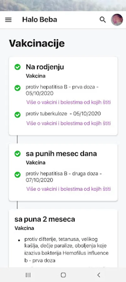 Bilo da ste mama ili tata, pomoću aplikacije možete organizovati kalendar vakcinacija i lekarskih pregleda za svoje dete, pratiti bebu ili dete uz karte rasta i dnevnik razvoja, dobijati podsetnike i smernice u odnosu na uzrast i unete podatke.