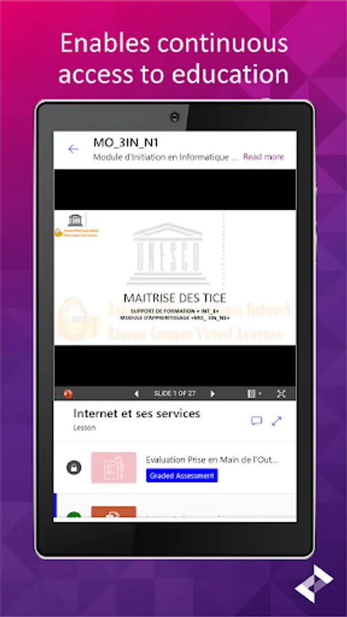 This mobile application provides educational content to parents, students and teachers for anytime and anywhere learning needs. It is the result of a collaboration between UNICEF, MICROSOFT and the Ministry of National Education