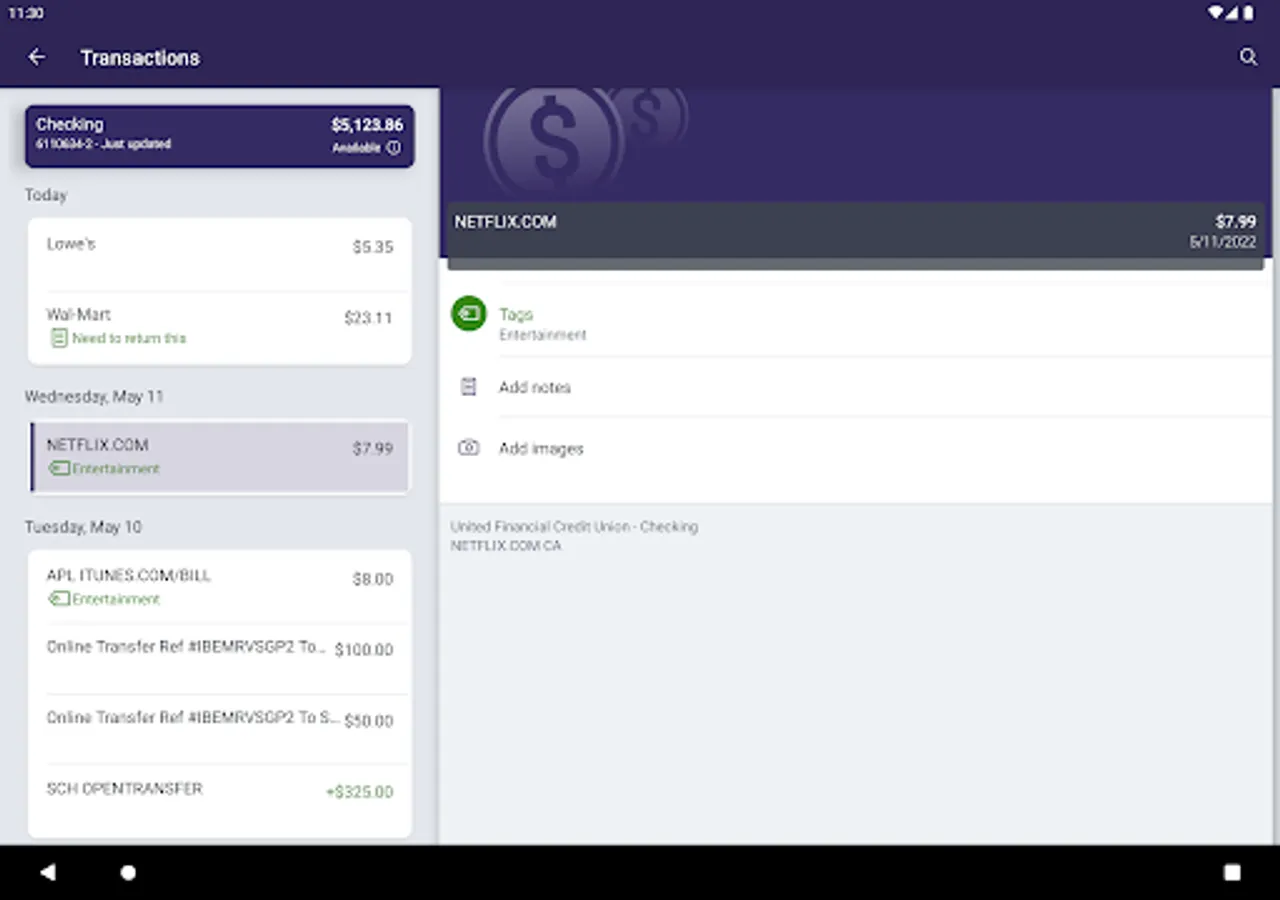 Keep your transactions organized by allowing you to add tags, notes, and photos of receipts and checks.