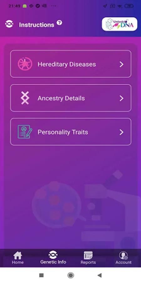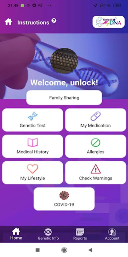 If you would like to access your genetic markers and incorporate that clinical data into your app, Unlock MyDNA will offer an in-home genetic test kit, which is purchasable for a nominal fee (often times reimbursable through insurance). The test is a simple saliva sample which will be used for DNA sequencing and analysis (results may take up to 4 to 6 weeks). Once your results are complete, you’ll be given a results code to input directly on the app and you’ll unlock the full capabilities of Unlock MyDNA!