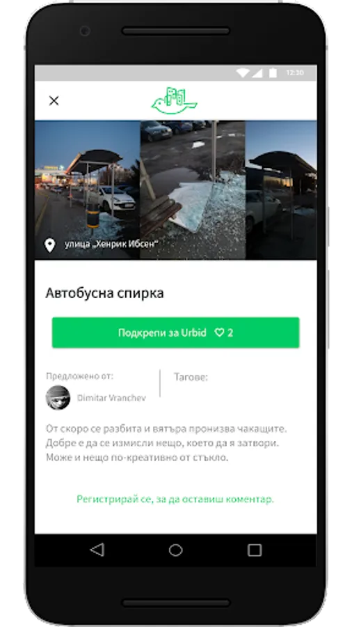 URBID is the official app of the URBID project - an innovative social initiative that addresses grassroots urban transformation and environmentally sustainable reuse of existing objects and spaces. It proposes a novel design and decision-making platform that enables citizens to identify derelict sites and artefacts in their neighbourhoods, start a competition generating proposals for their transformation, and access a variety of funding options.