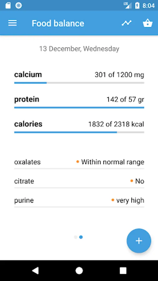 Those who are dissolving stones (urate or struvite) will get a special section "pH DIARY", which allows you to enter the pH of urine directly into the smartphone, with graphic representation if needed.