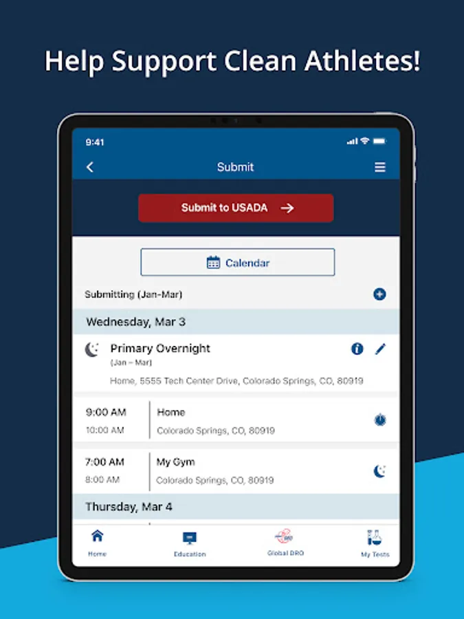 Welcome to the fastest way to update your whereabouts! The Athlete Express Updater App allows athletes in USADA’s Registered Testing Pool to view and update already-submitted whereabouts information.