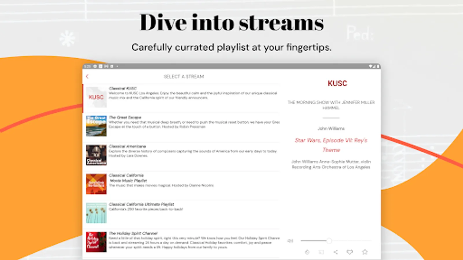 Try a brand new variety of curated playlists with a hand-picked music mix and friendly hosts. All free, all streaming 24/7. Discover your new favorites with Classical KUSC.