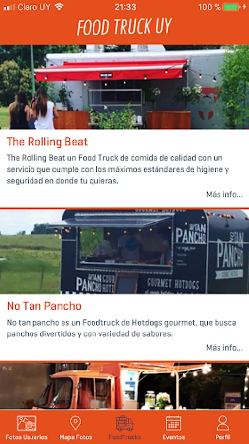 Collaboratively of different food trucks in Uruguay, as well as event organizers where they will participate, is that we will have a weekly basis, the location of food trucks on the Map.