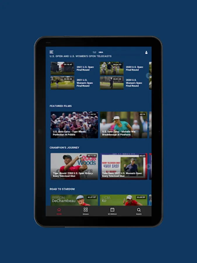 USGA OnDemand is your, year-round, front-row seat to experience golf’s extraordinary moments- live and on demand, and past, present, and future- no subscription required! Features include: