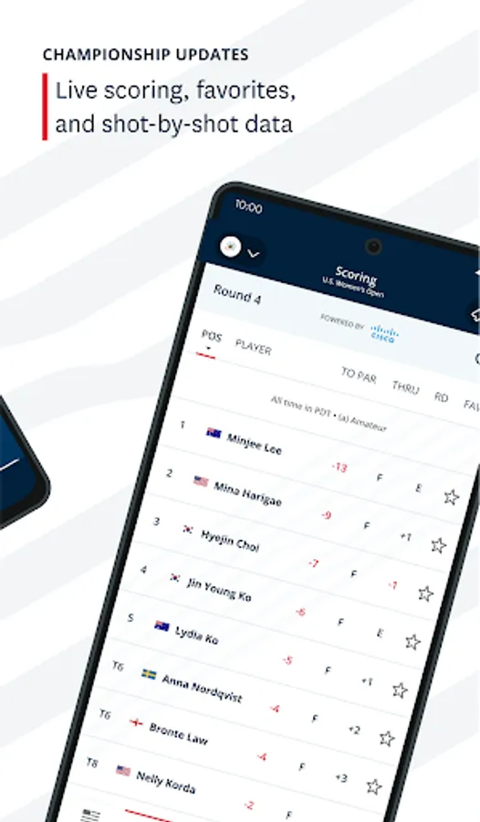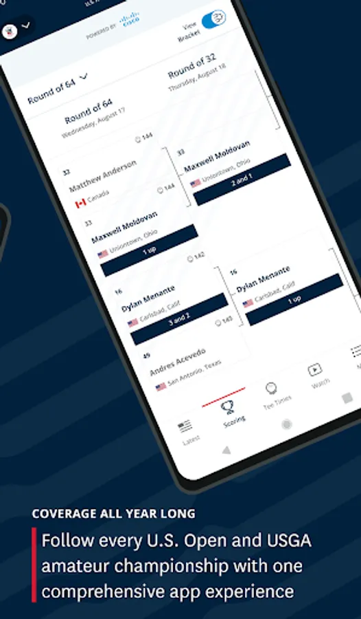 Keep up with all of the action as it unfolds for every 2023 USGA championship, from every round of stroke play during the U.S. Opens to every single match for all amateur championships. Favorite unlimited players to build customized leader boards. Watch every televised shot of the U.S. Open, U.S. Women’s Open, U.S. Senior Open, and U.S. Senior Women’s Open with highlights right within the players’ scorecards.