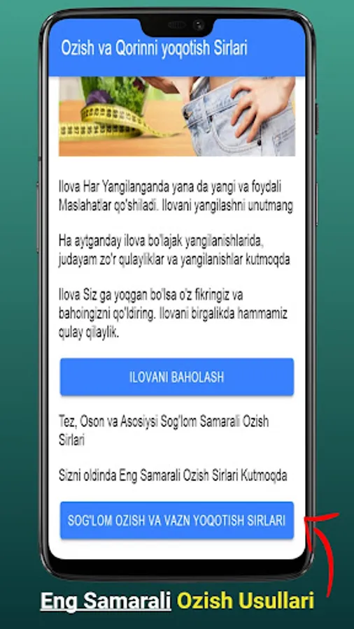 Ozish mashqlari va Qorinni yoqotish ni samarali usullari bilan siz Tez va Oson Ortiqcha vazindan halos bo'ling.