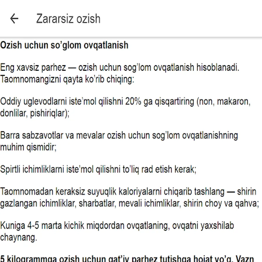 Samarali Ozish ga tilakni o'zi yetmaydi - Ozish uchun Parhez va To'g'ri Ovqatlanish ga ham rioya qilish kerak.