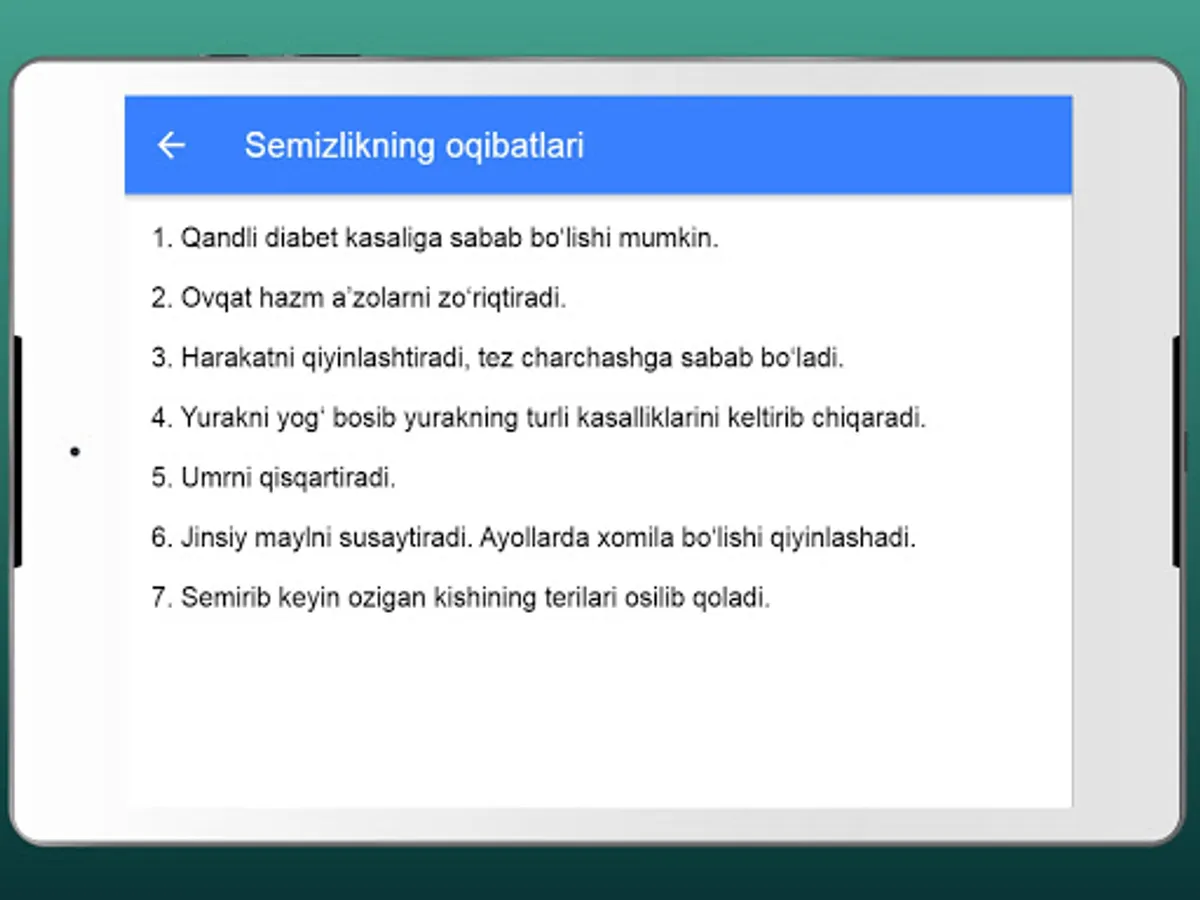 Muntazam bajariladigan mashqlar va parhez ga rioya qilgan holda yanada ko'proq ortiqcha vaznda halos bo'ling. Ko'rsatilgan mashqlar samarali vazn tashlashda yordam beradi unga qo'shimcha tarzda to'g'ri ovqatlanish va parhez ga rioaya qilsangiz, natijasi o'zini kutishga qo'ymaydi.