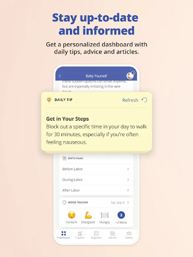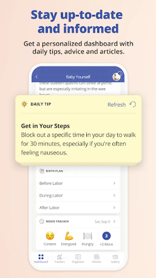 • Prompts to enroll in the program directly and keep your nurse updated throughout your pregnancy by answering trimester questions within the app.