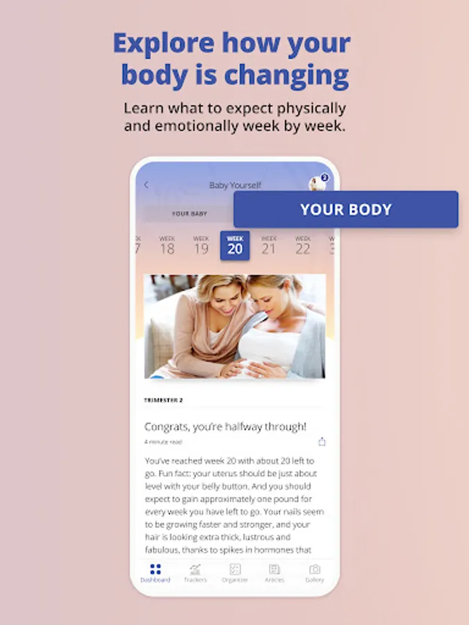 The Baby Yourself Maternity Program app helps ensure expectant mothers and their babies receive the best possible healthcare during pregnancy by allowing mothers to track their pregnancy and baby’s development. This program is available to expectant mothers, regardless of whether or not their pregnancy is normal or high risk. The app provides dynamic features available to those mothers both registered in the Baby Yourself Maternity Program or for those seeking a customized experience, within a personalized pregnancy and parenting resource.