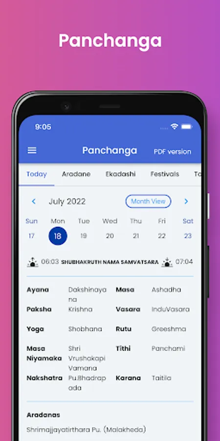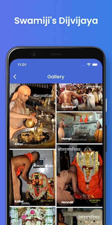 This App also provides details of the Deities worshiped by His Holiness and also the Social & Religious initiatives of the Math for the benefit of all disciples. Panchanga, eBooks, Gallery, Pravachanas etc. are also