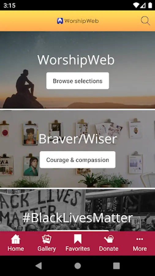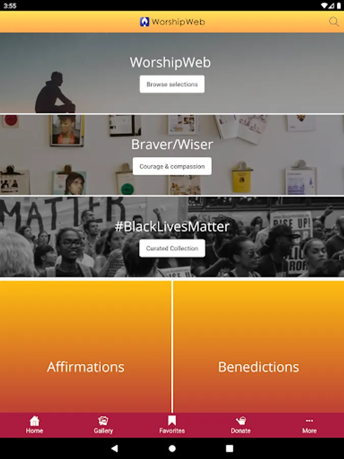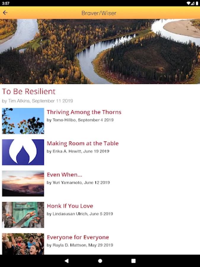 Mark your favorite items for offline access or share them with friends and family; browse the image gallery of shareable graphics; and contemplate weekly Braver/Wiser reflections.