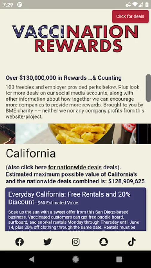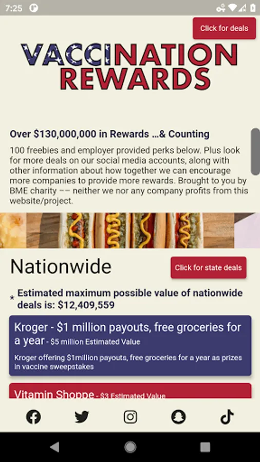 Nonprofit App That Aggregates Over $120 Million in State and National Vaccine Incentives, Featuring Over 100 Deals.
