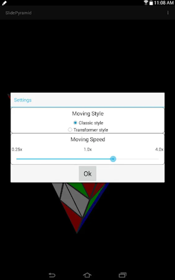 - Moving triangle and direction are defined by two taps: tap on chosen triangle, and next tap to the place you want to move. Notice that entire band surrounding pyramid is moving (that is something similar to Rubik's Pyramid).