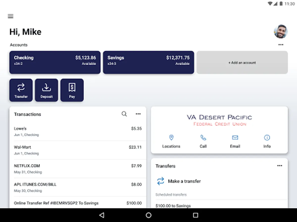 To use the VA Desert Pacific Mobile App, you must be enrolled as a VA Desert Pacific FCU Internet Banking user. If you currently use our Internet Banking, simply download the app, launch it, and login with the same Internet Banking credentials. After you successfully login to the app, your accounts and transactions will begin updating.