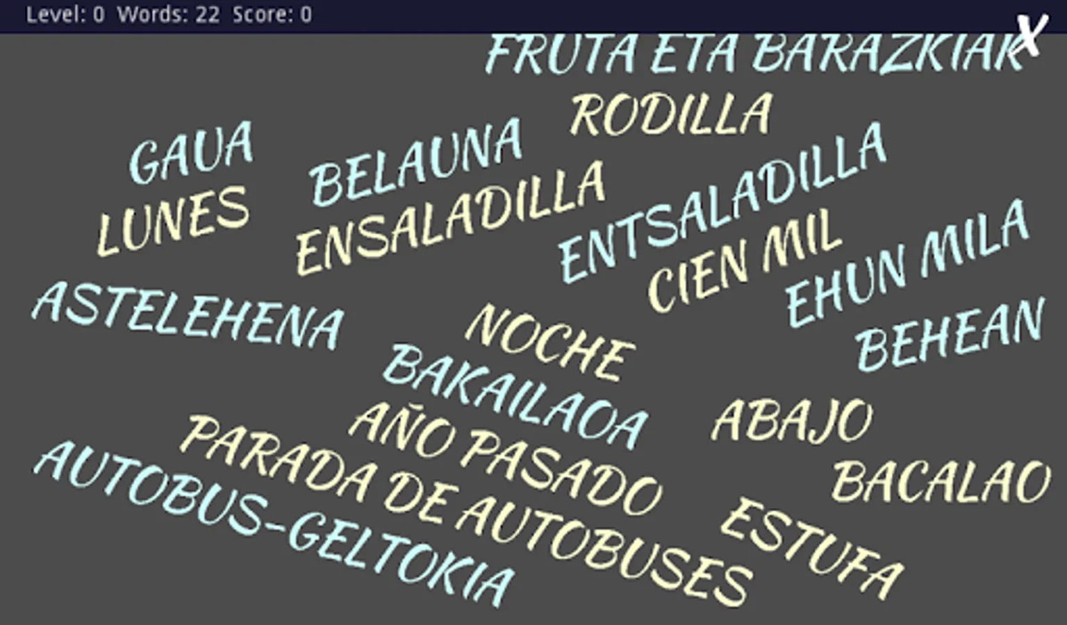 Game for learning words in Basque.