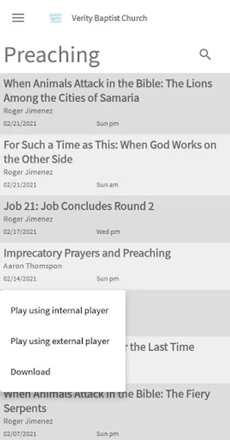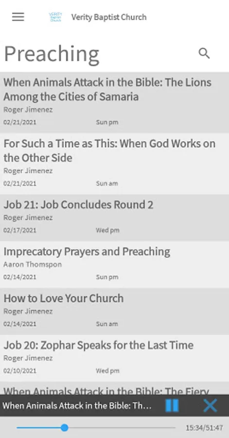 This app contains preaching from Verity Baptist Church in Sacramento, California and also from Manila, Philippines. The app allows you to listen to preachings online. You can also download the preachings and listen to them when you have no internet connection.
