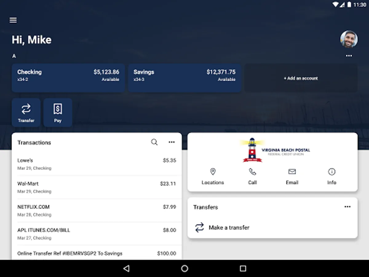 To use the Virginia Beach Postal FCU App, you must be enrolled as an Virginia Beach Postal FCU Internet Banking user. If you currently use our Internet Banking, simply download the app, launch it, and login with the same Internet Banking credentials. After you successfully login to the app, your accounts and transactions will begin updating.