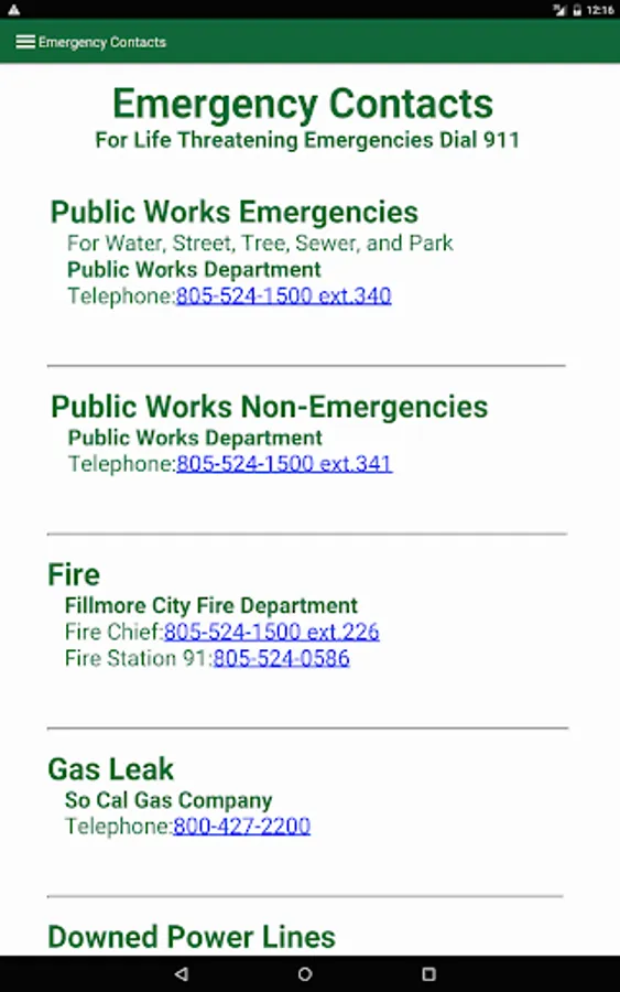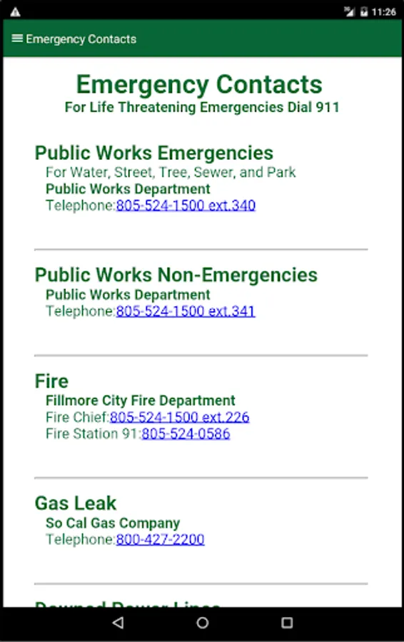 In addition, there are features to connect you to the City of Fillmore events calendar, city council, city contacts, emergency services, and VC Alert resources!