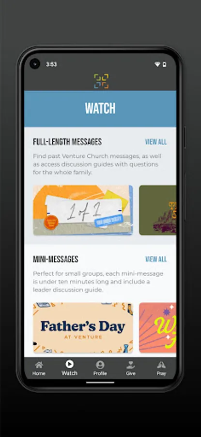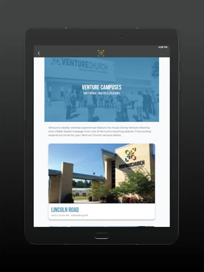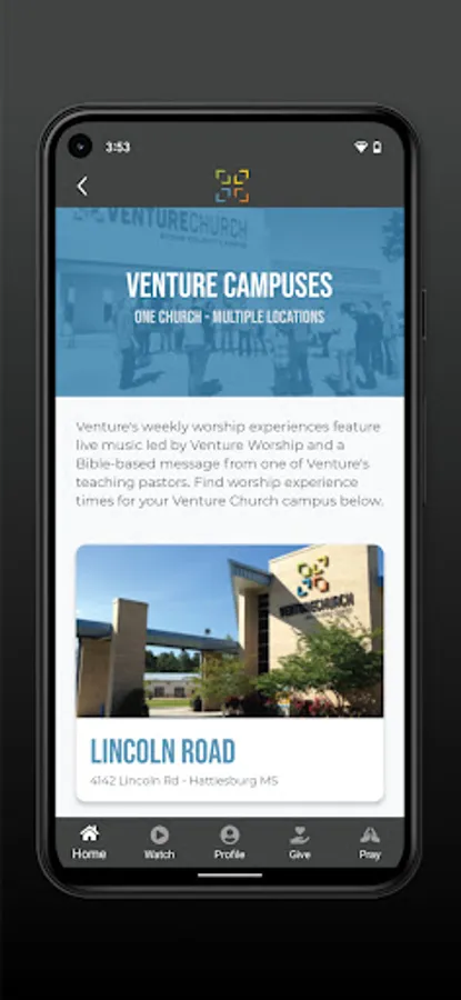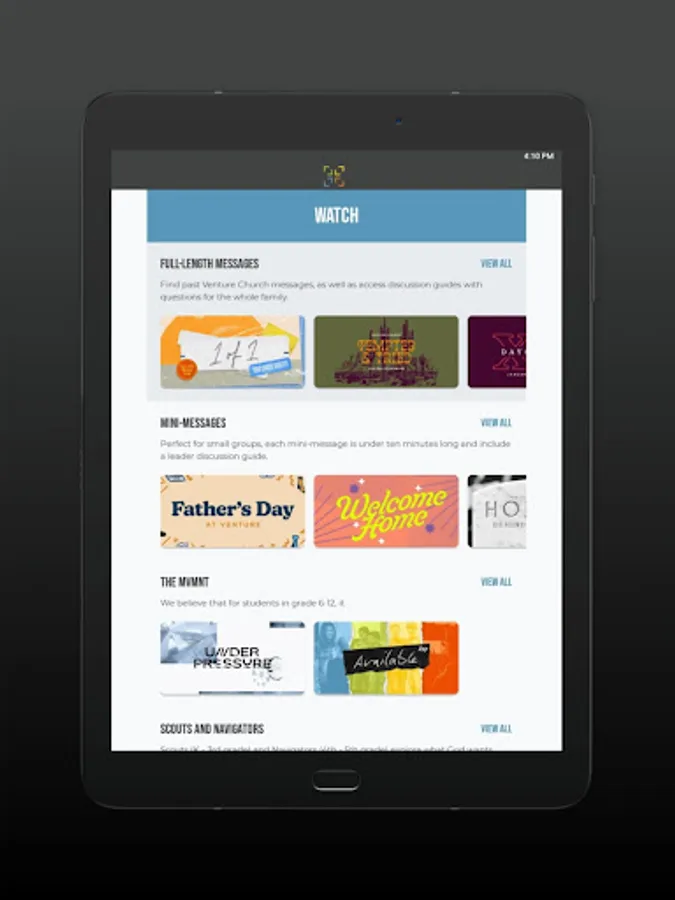 This free app allows you to connect with Venture Church by watching our Live Stream, finding location information, watching or listening to past experiences, giving online and much more! You can even share with friends and family via social media and email.
