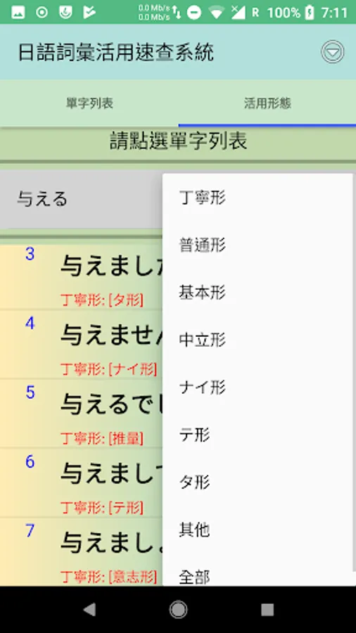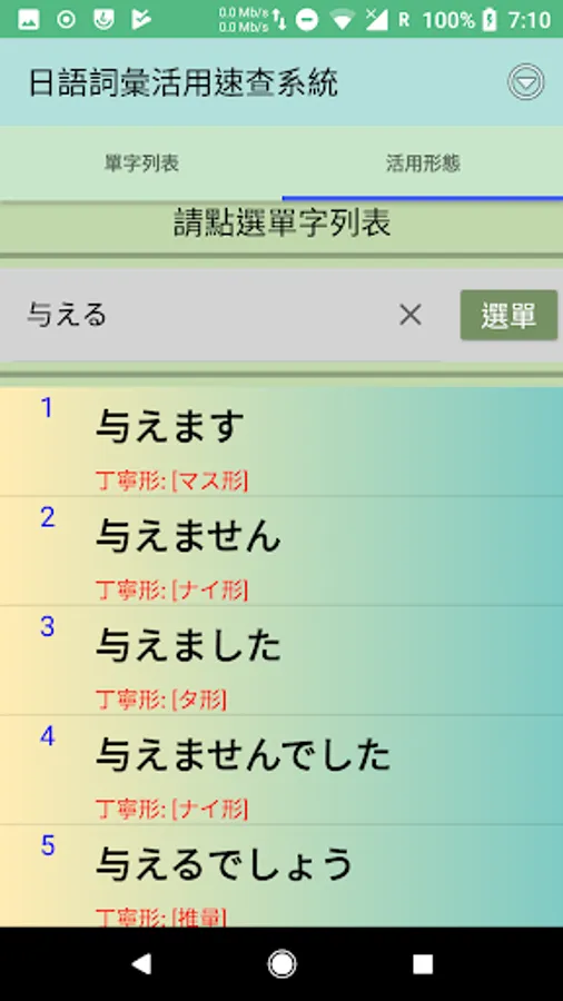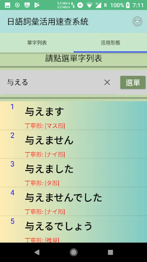 2.點選任一單字立即產生該詞彙的特定接續型態。