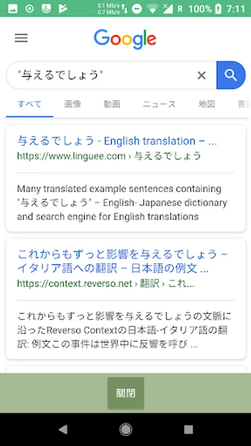 4.點選任何一個項目,系統則同時與語音合成連動,念出被點選的項目,同時開啟網頁連結,顯示該句型在網頁檢索中使用使用的情況,做為進一步學習參考。
