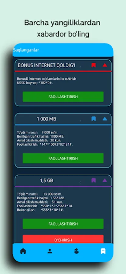 ✭ Internet, sms va ovozli paketlarni faollashtirish