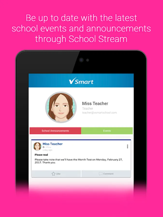• Organize their school, classes, teachers, and students through the V-Smart Admin Panel