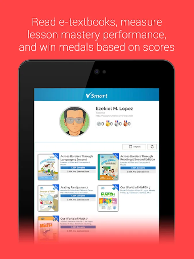 • Read e-textbooks, measure lesson mastery performance, and win medals based on scores